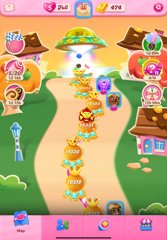 for the last few days, I no longer have the Events icon along the bottom of the screen. Although I have most icons that appeared in Events along the sides, I can’t check my progress in the chocolate box unless I play levels, but when my box choice is playing new levels, I can’t change my choice or check my progress if it’s on playing new levels selection.