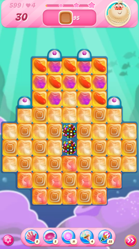 I played all levels on both devices with both colour bomb and wrap + stripe starting boosters