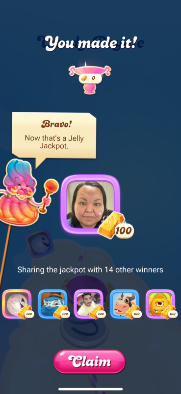 Hello @SativaGummi! That's a great win and it's a nice sum of gold. I did once win the full 500 gold a long, long time ago. But as the game has changed hugely and King control how much they give us, I'm really not sure if anyone wins the whole jackpot now. I never get more than a sixth of it now, so well done!