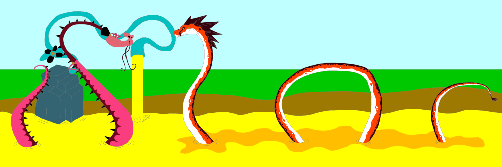 This visitor is none other than an original character created by professional serpentine creature artist SpicyNoodleArt known as Zakk the Titan Wyrm. I have made painstaking efforts to faithfully reproduce this giant serpent's skin and scales, including all the spots and blotches, in hopes that this original character's creator will be impressed enough to use their skills to create their own take on Denize!