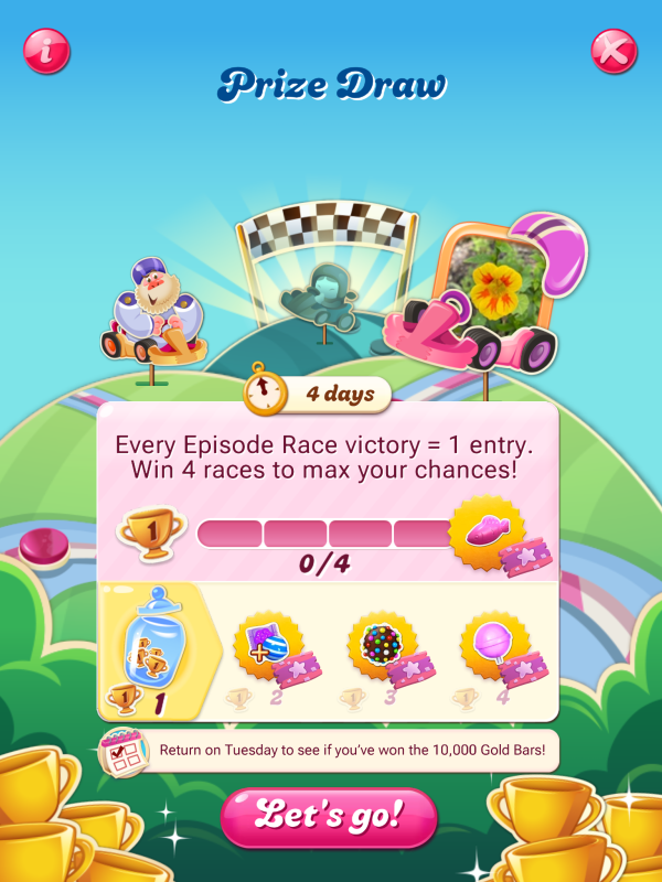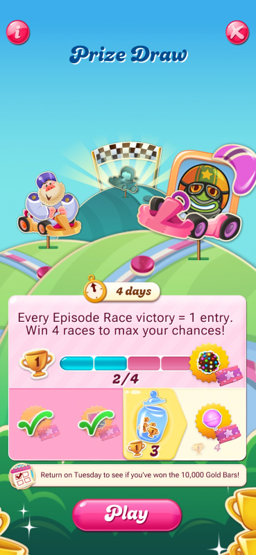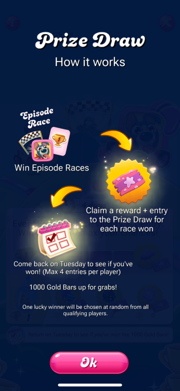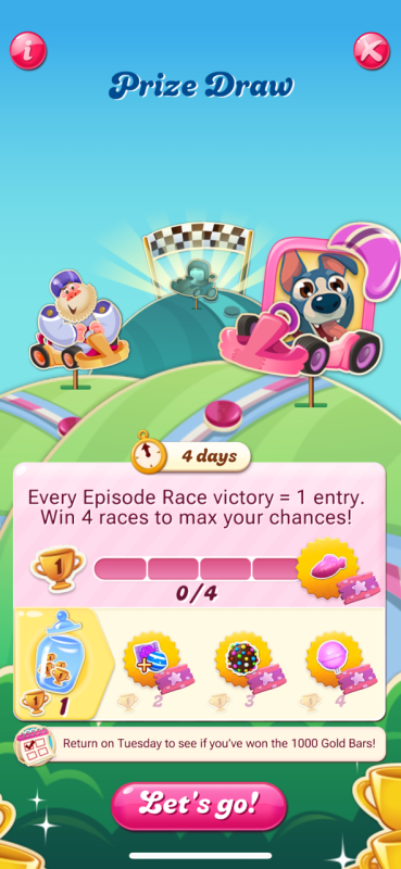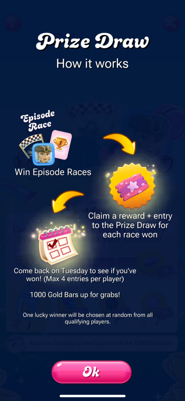 You’re reading that right 😄 This Prize Draw gives players one entry for every Episode Race victory, with up to four chances to win and one lucky winner will scoop up the big prize🍬 As for the Gold Bar cap, that’s still being looked into by the team, so no worries there for now 😉