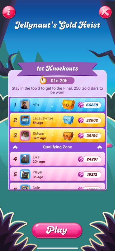 I actually qualified for the next round, but I don’t play consistently enough to go for the top spots. The people who win the big gold usually play a lot — like 80–100+ levels a day 😅 It takes real time and dedication to stay at the top of the leaderboard.