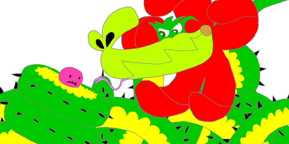 Unfortunately, the horror began when Denize and Stella lost control of the transformation. With more than a healthy dose of sunlight, water and food, she mutated into an arboreal abomination that will send chills down your spine. Filled with enormous hunger, she began to feast upon everyone in the Candy Kingdom, starting with little Tiffi, whom she would not even spare as she wrapped her massive thorny stalk around her.