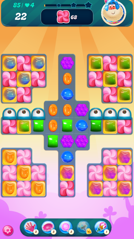 - The overall basic level pass rate algorithm is quite simple: It includes four types of outcomes: an easy pass, a pass with skill or on last two moves, a bad fail, a near miss (one jelly or few moves short)