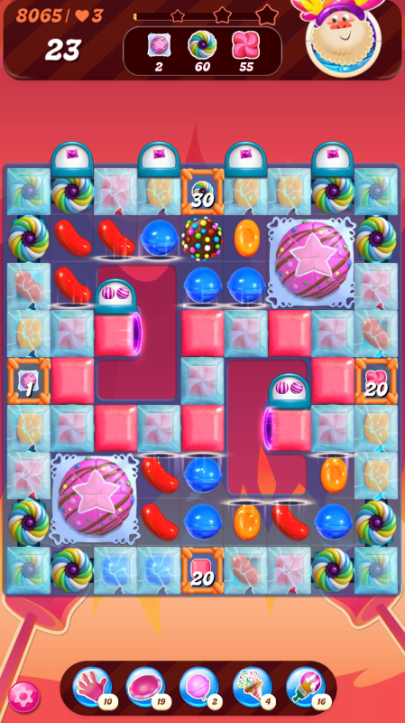 - Overall the game manipulates difficulty by features and events now. This includes the super charger, timed boosters from various events, extra moves from friends, absence of ads etc. Events are a way for King to make the game easier for some test groups and harder for others. The individual level board algorithms include some boards that either require the use of certain boosters or +1, +3 or +5 moves, and the events will then boost specific player groups to pass those boards.
