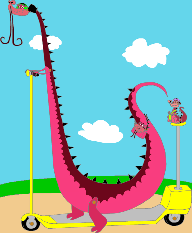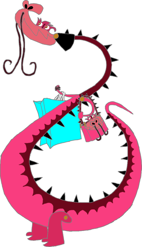 And here's Denize herself slinging her signature purse on her shoulder while she goes shopping. When she needs to drive her giant electric scooter, however, she transfers her purse to her prehensile tail and makes sure it isn't within the reach of her daughter Didi if she sits in the scooter's backseat.