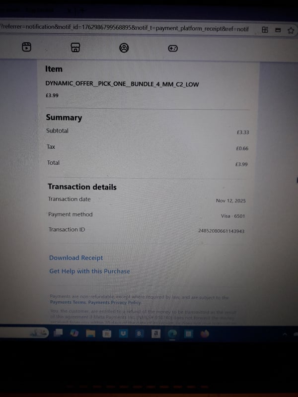 Disgusting service Took £3.99 on 12/11/2025 for a bundle and I never received it nor my money back After many messages to Candy Crush and Meta pay this still has not been sorted