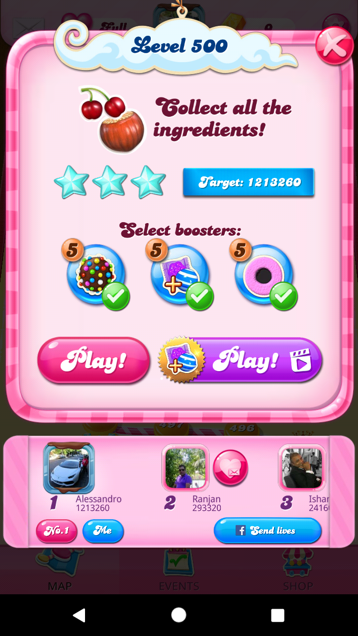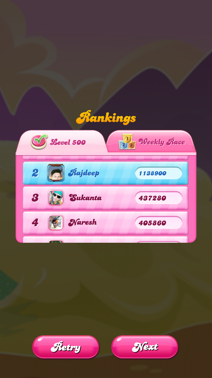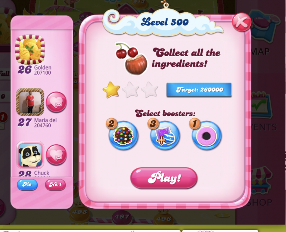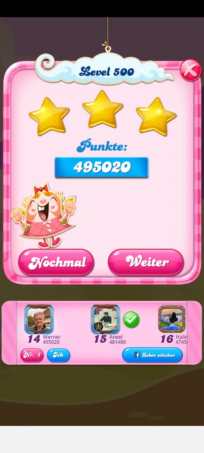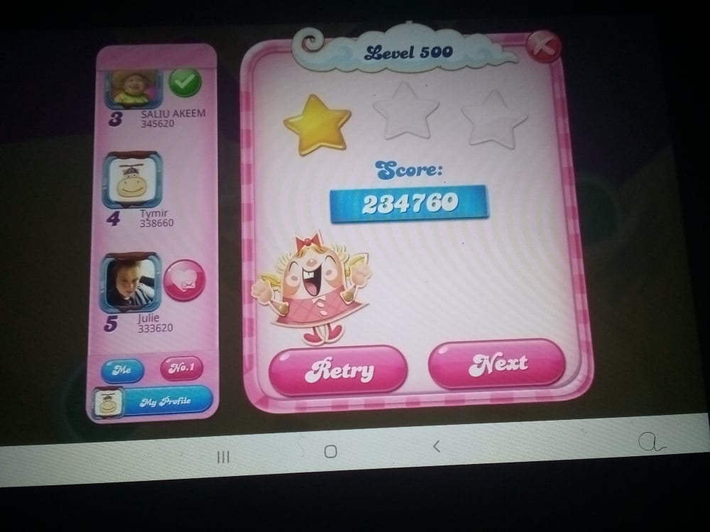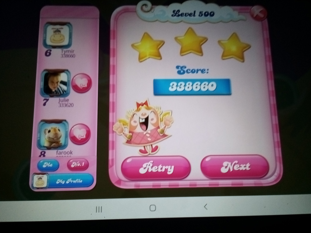 Had to scroll back a little but managed to find level 500 in Candy Crush Saga: