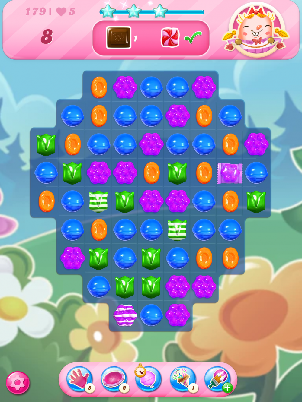 There was no way to complete it because it kept saying that I needed one more piece of chocolate cleared, and there were no more pieces of chocolate! This screenshot shows I still have eight moves left but as you see, there is no chocolate, so I ended up being told that I lost this level after I had finished my moves. Super annoying. I don’t want to play again and have the same bug replicated, so I want to make sure this is working!