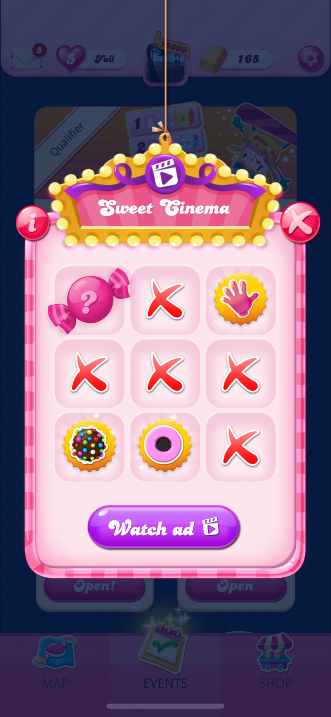Better than not having it at all @Munster which is what has happened to me. King removed my Sweet Cinema and replaced it two days later with the Treasure Hunt. On the same day that it arrived the Treasure Hunt gave me one booster and then disappeared never to be seen again