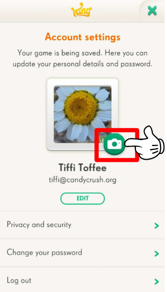 If you do not see the Camera icon, your game do not have the option to change the profile picture. Because, King has made changes to some players' accounts. Hence, some players might not have the option to change their profile picture!