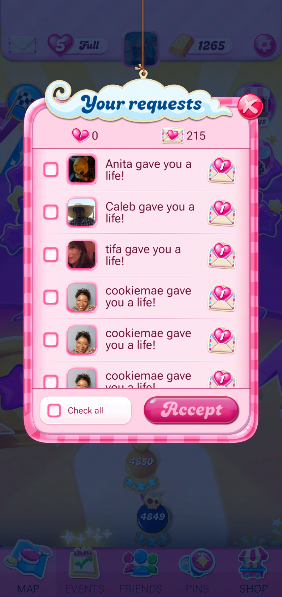 @Maddy1996, please stop asking for lives in this Community. You can only request lives from friends in your game app. Tap 👉HERE👈 to view the article in our Help Center that describes how to do that.