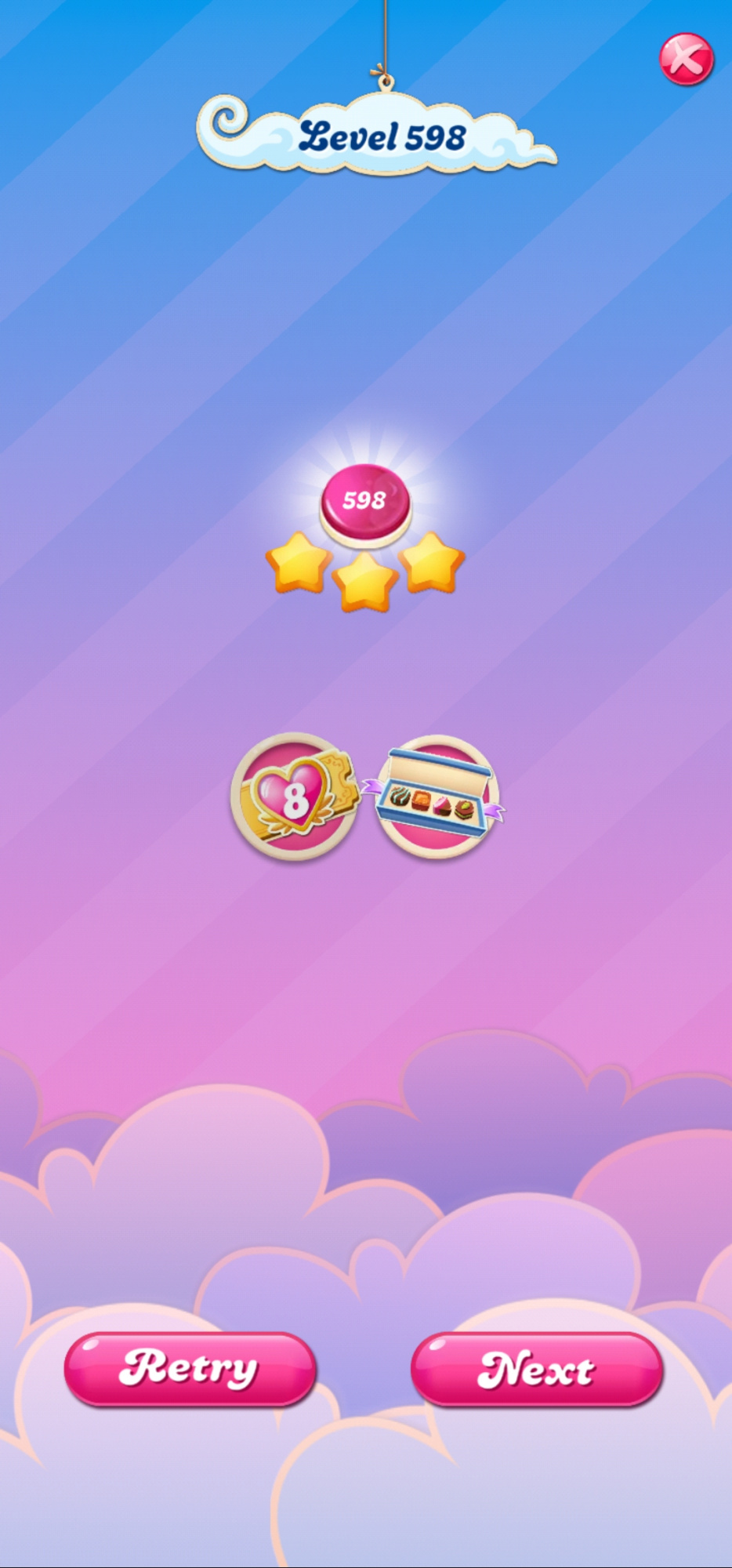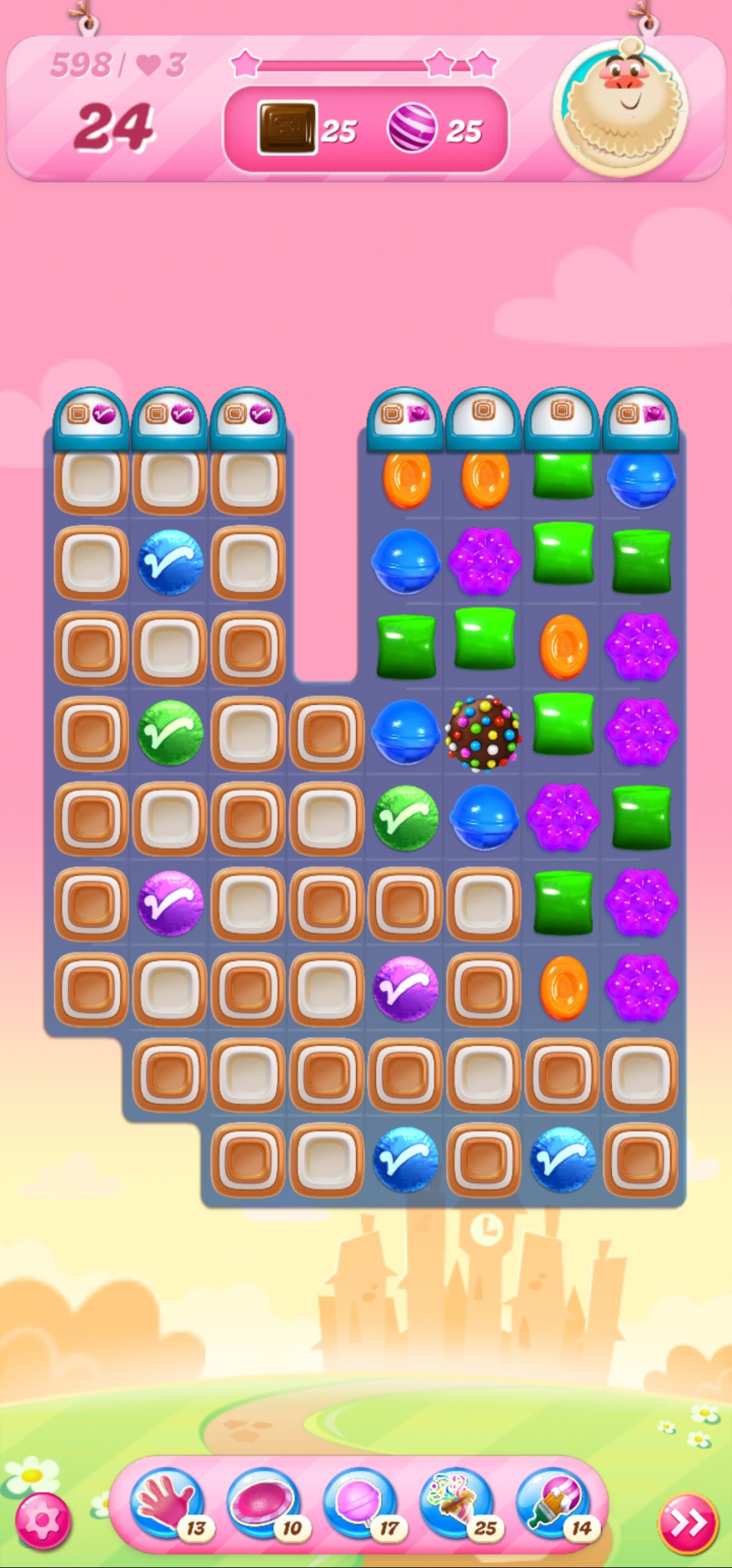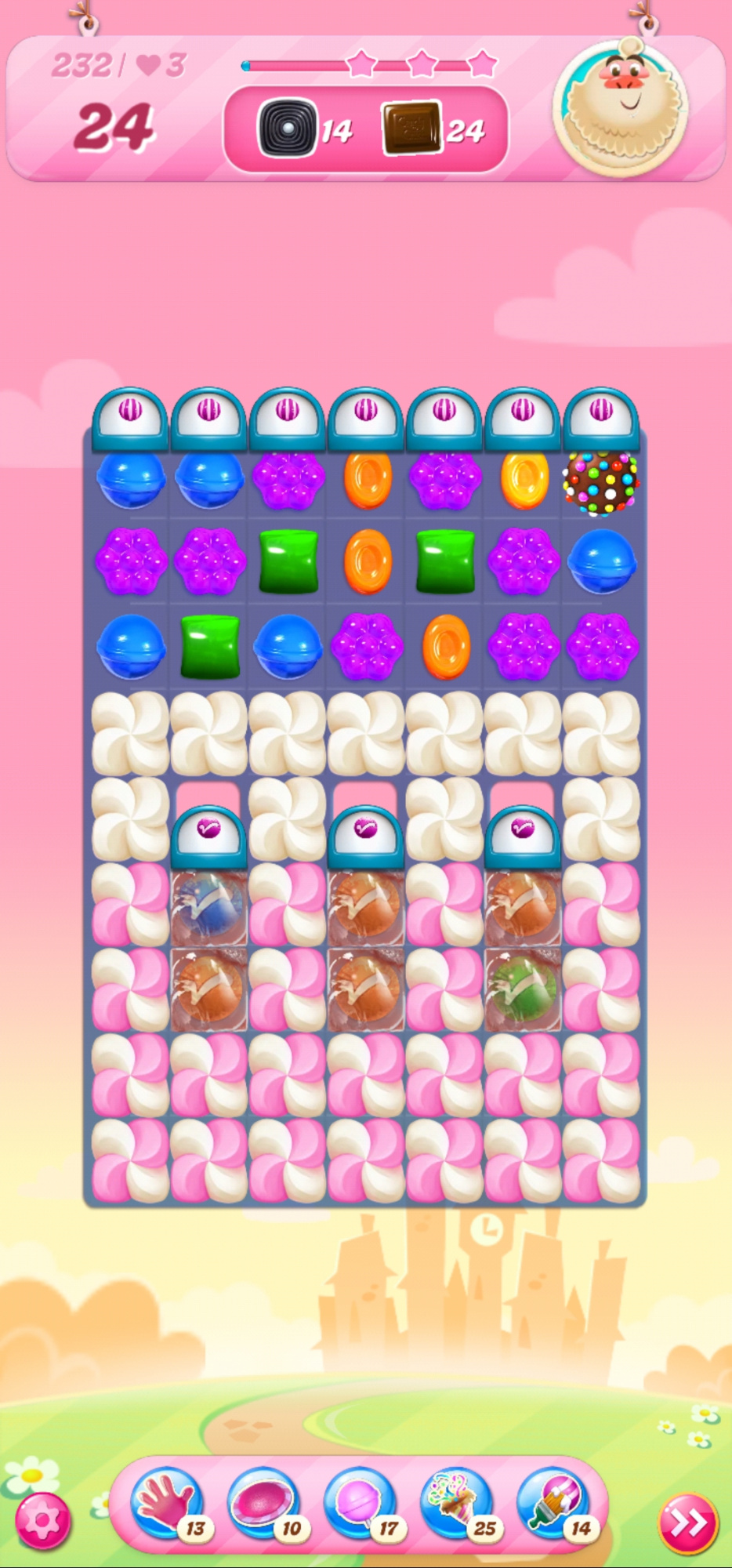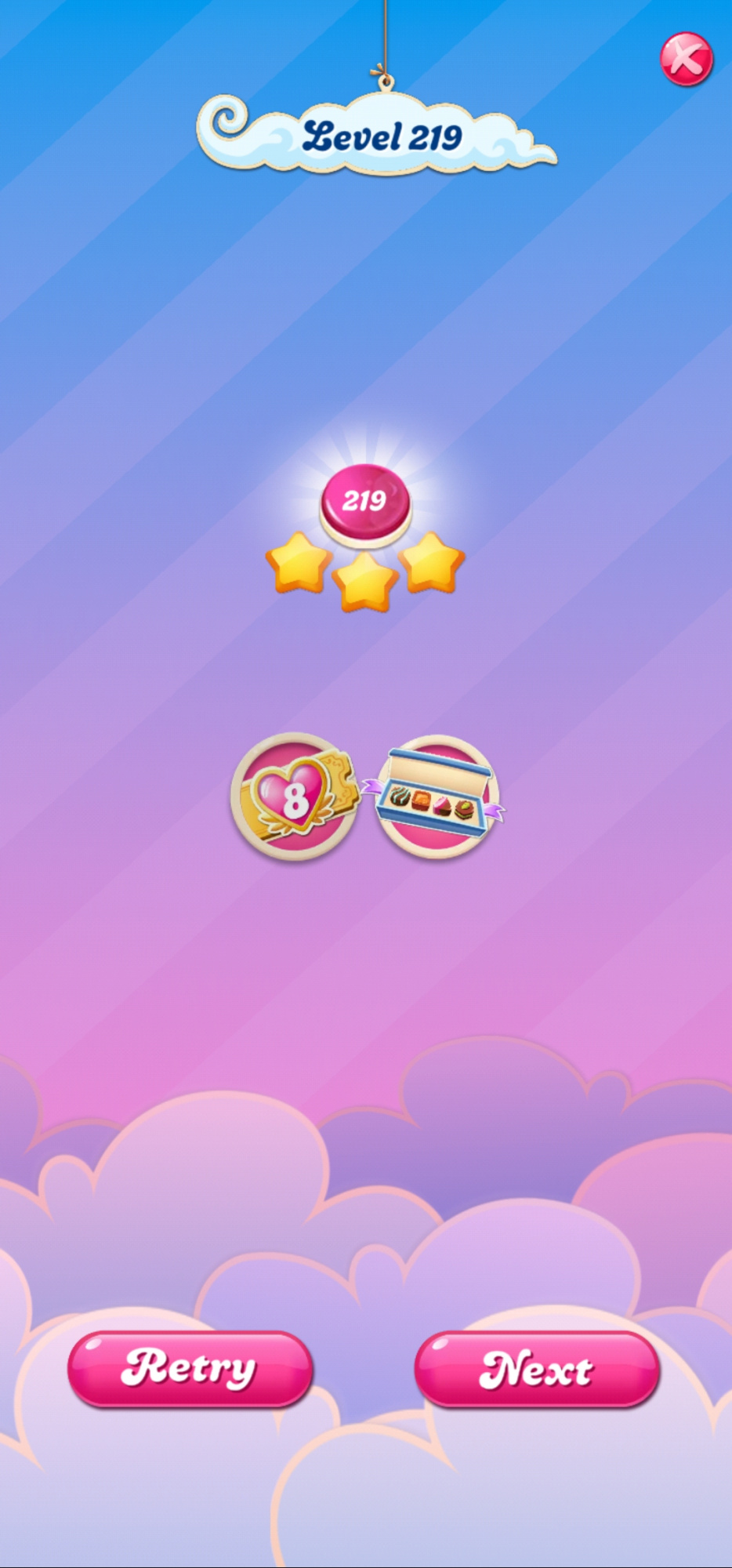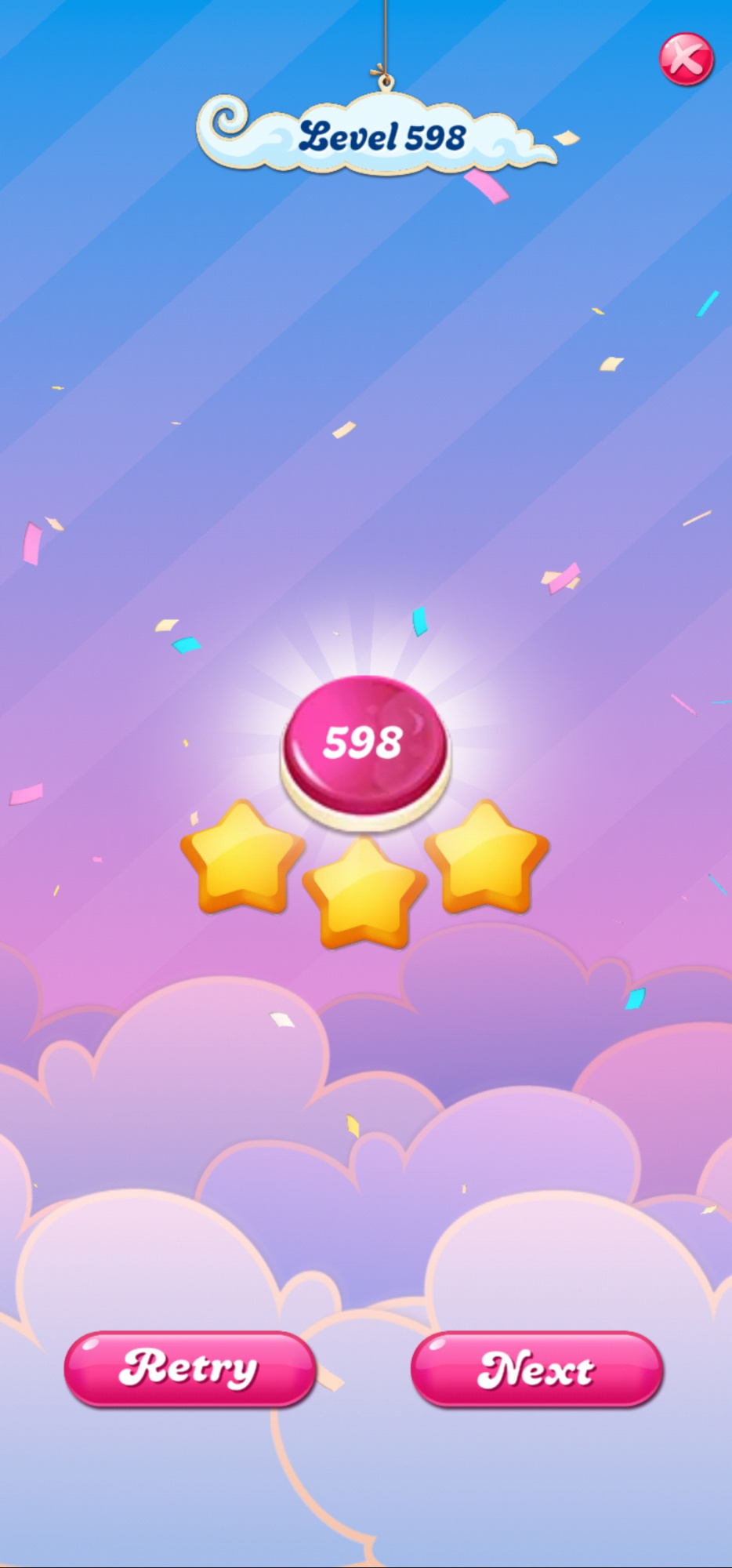 - Take a screenshot at the beginning of a level (showing the number of clear all of the Chocolates) and a second screenshot showing the level has been completed.
