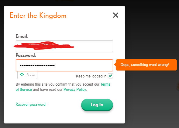 I'm trying to log in on a laptop, and it says "Oops, something went wrong!"