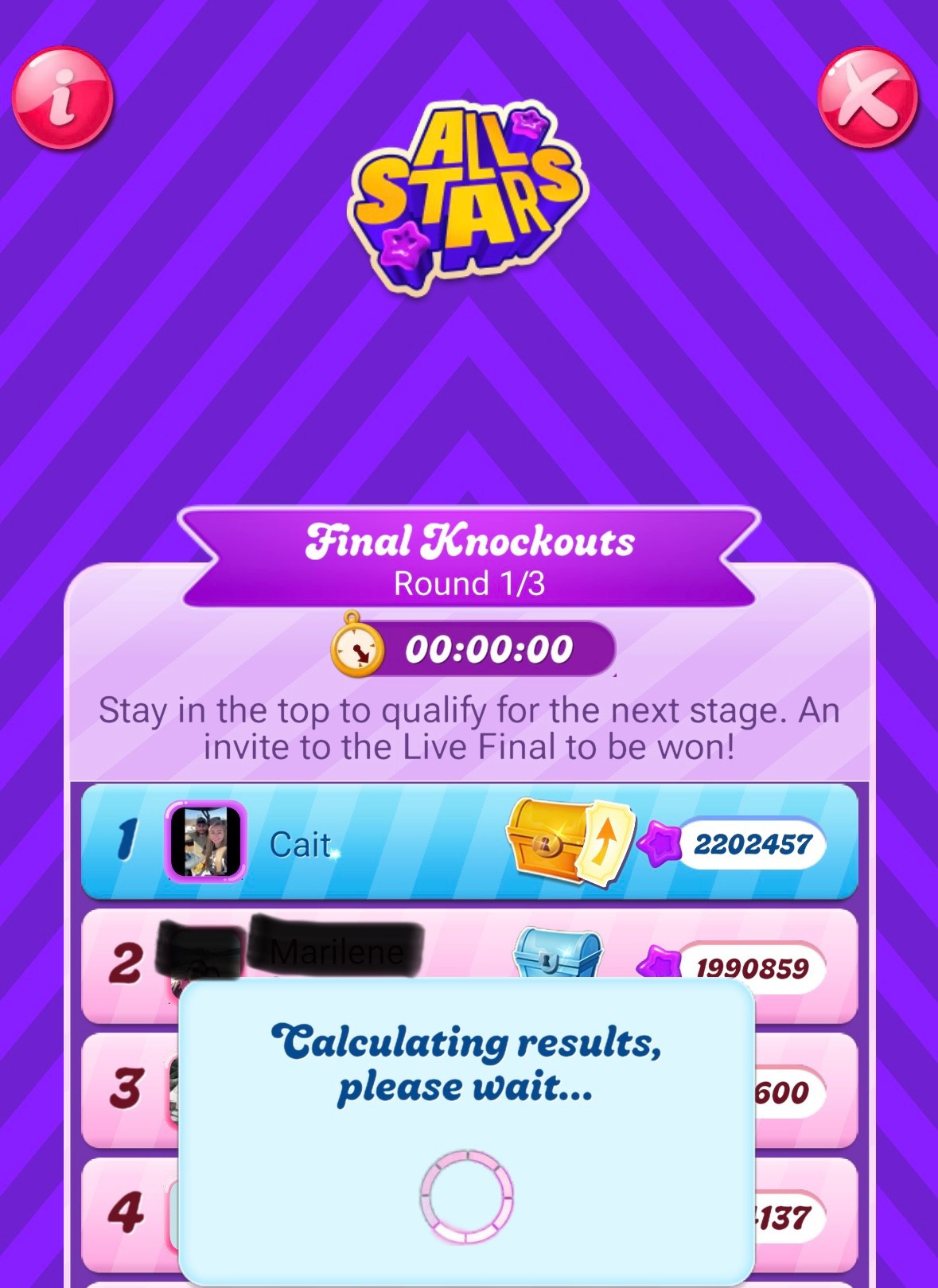 I'm out and completely bummed 😭. I took the lead early in the round then went back & forth a couple times until today when I couldn't play at all this afternoon. They took the lead by over 400k and I rallied back starting around 7:30/8pm tonight to a little under 6k while they were still actively playing. Another 20ish minutes and I would've had it 😭.