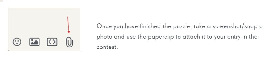 Once you have finished the puzzle, take a screenshot/snap a photo and use the paperclip to attach it to your entry in the contest.