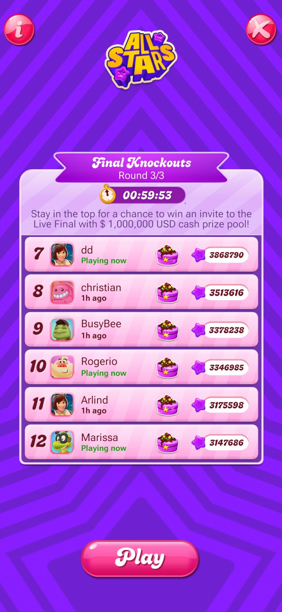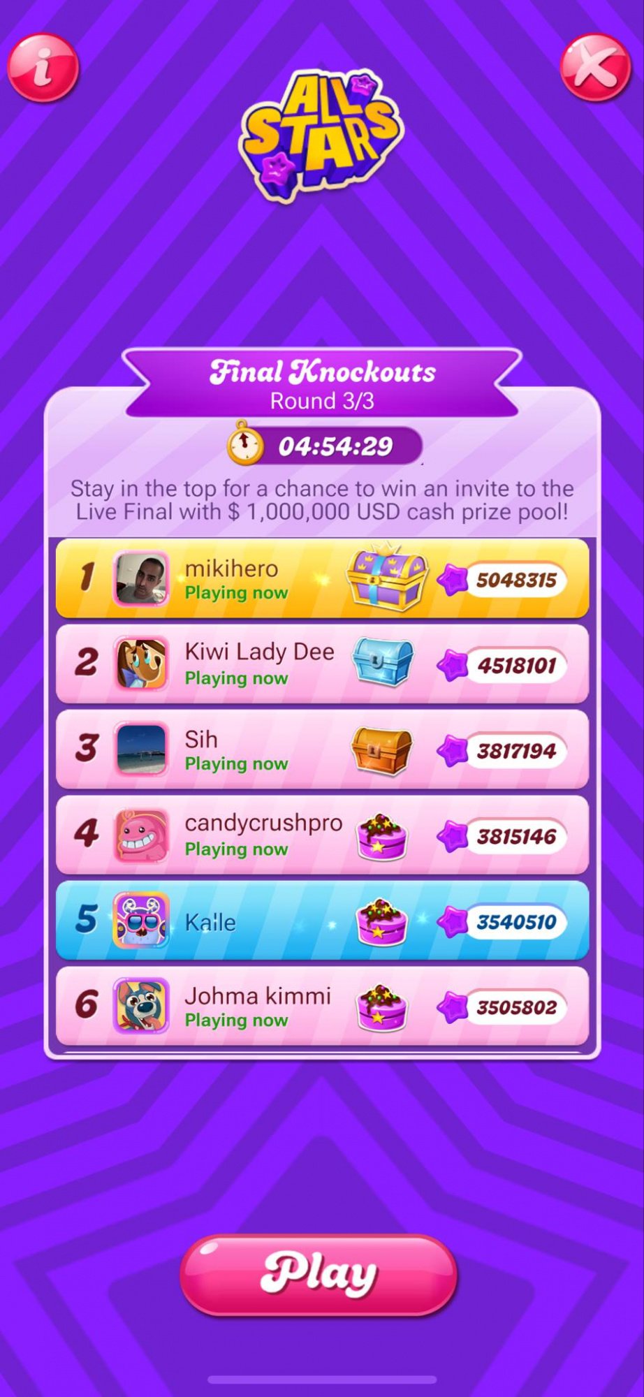 @teenybee milihero said he was a honest player player and got kicked out after 20 hours. No cheating. Said he was getting a lawyer. No telling how many people were kicked out and why. I just don't trust king anymore to be fair. For me having to much gold that I got legit playing for a year 68,000 was not fair. Kicking people out of the finals is mess up.