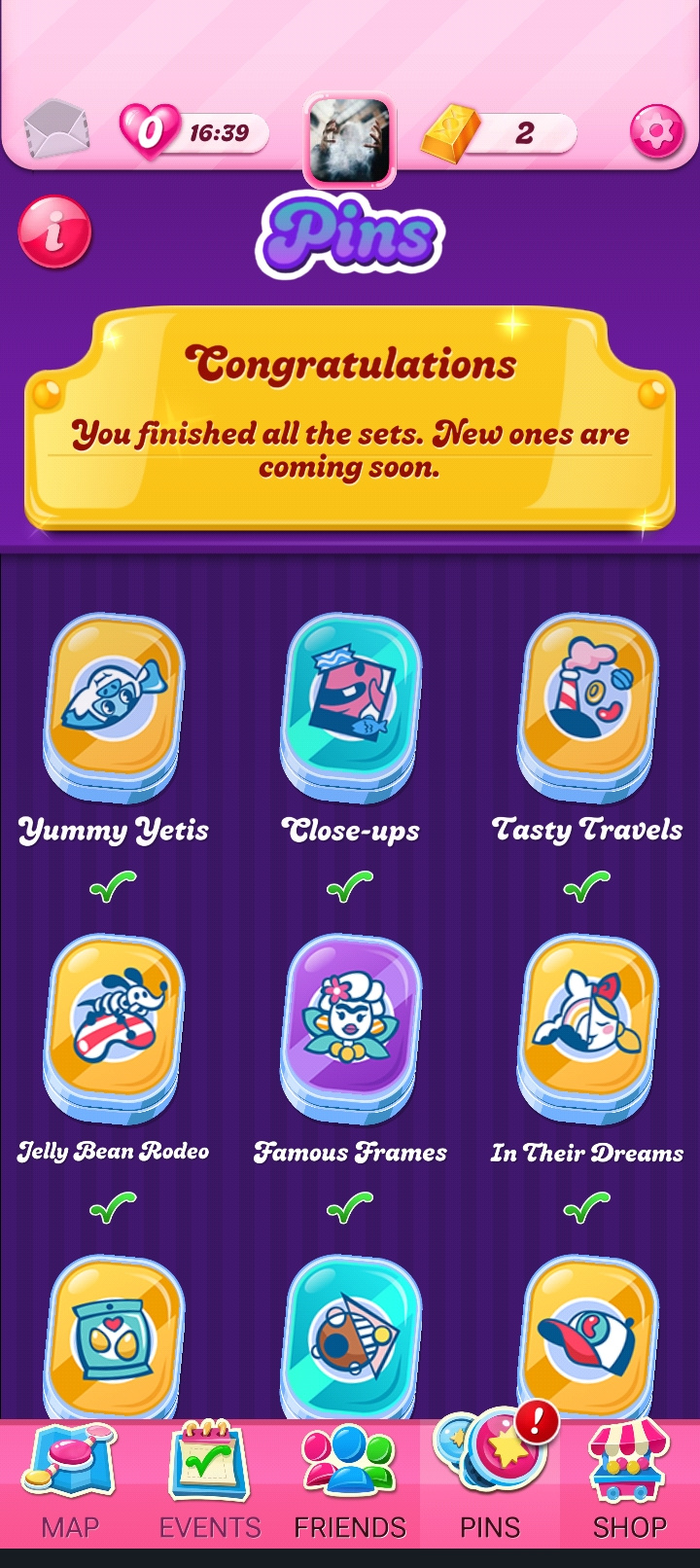 Try to complete pins sets within the time frame to receive 120 gold bars and other boosters.