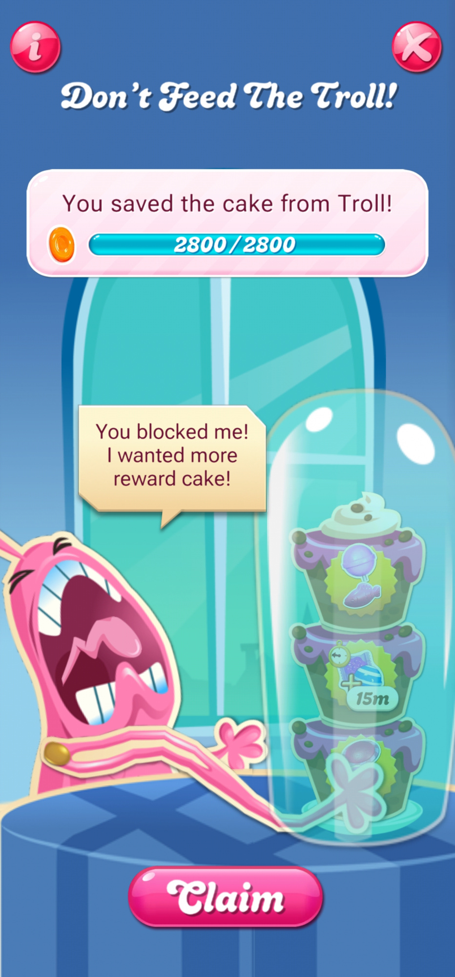 Don't feed the troll has become useless ever since King removed the option to win orange candies with old levels