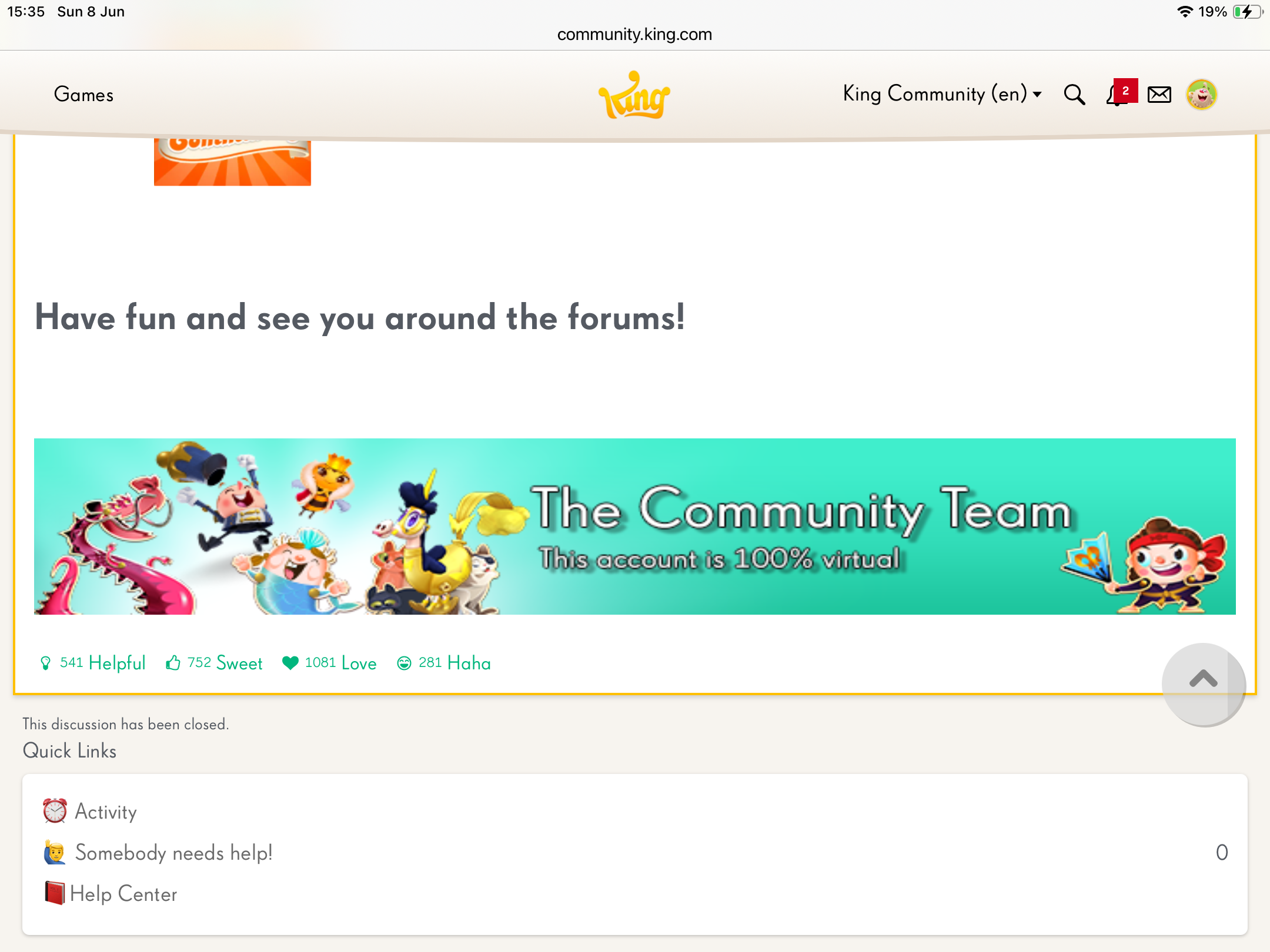 That's a really interesting question @KAP478 . I had one such thread amongst my bookmarks and now if I try to access it the "permission problem" message shows up. Normally when that shows up it means the page in question has been withdrawn. The sad fact seems to be that it appears King have done away with those general community pages. There was a suggestion from Alienscar a few months ago that they thought King were stepping away from this community, maybe this is part of that drive.