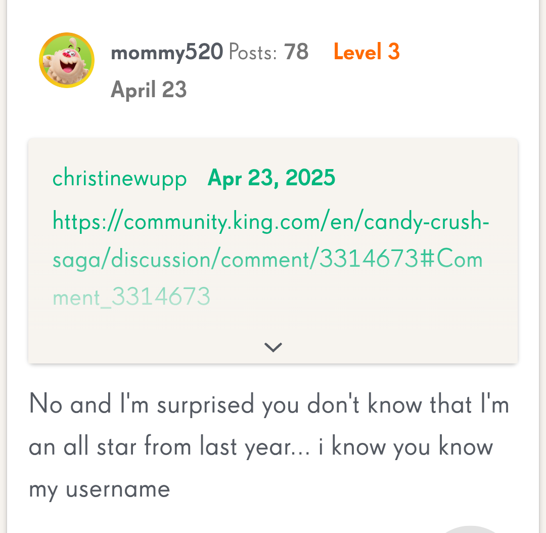 I'm not out to complain here, but now that King have published the photos and levels of all the All Stars winners, it all makes sense except the one in my leaderboard.