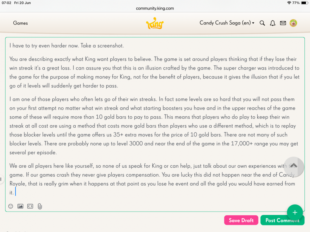 I also have a hunch that mentioning King in my replies now sends them for approval. This is new to this last week.