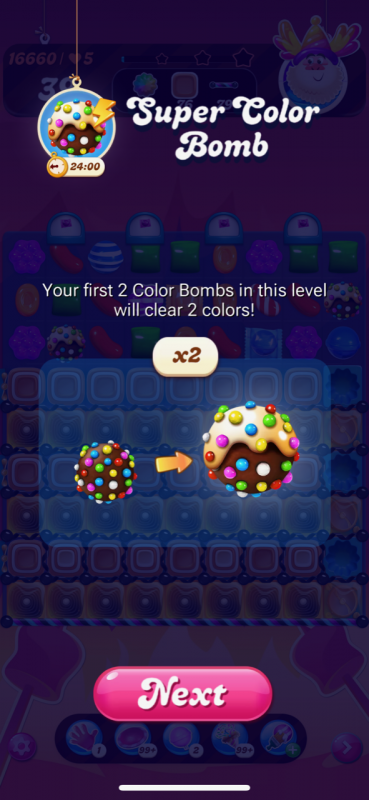 I'm still getting the super color bomb at 16k+. It comes back two days after I lose it, like clockwork. I normally don't try to keep it, it rarely lasts for more than 2-3 levels, and it's probably why I'm still getting it. King tend to remove features that you make good use of.