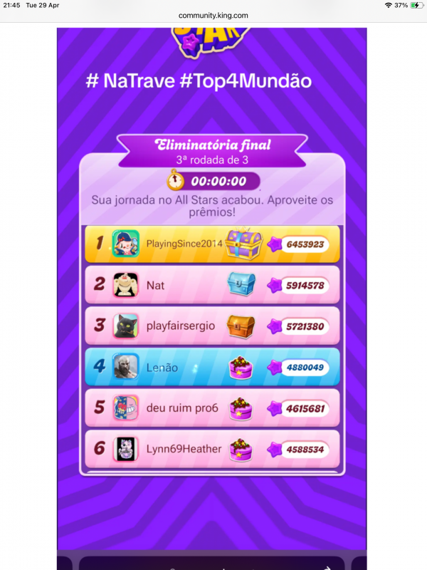 I'm not a bad loser, mind you, and of course always said that no way would I have travelled to the US for the live finals this year, especially since I had a great family holiday booked for the same week, BUT why was I never contacted by King and what happened to this leaderboard: