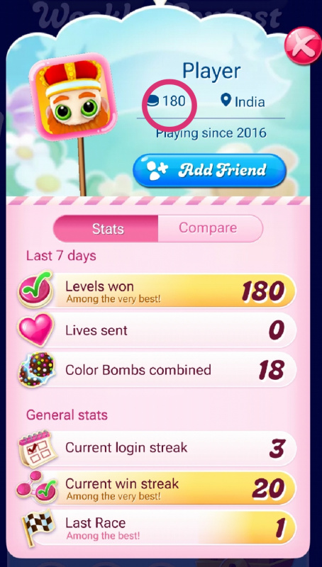 it shows they've been playing since 2016 passed 180 levels during the last 7 days and that they are on level 180.