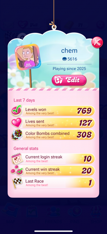 Hi! I’m KingsonCrush, currently stuck on Level 75 and leading the race. Looking for active players to send/receive lives!