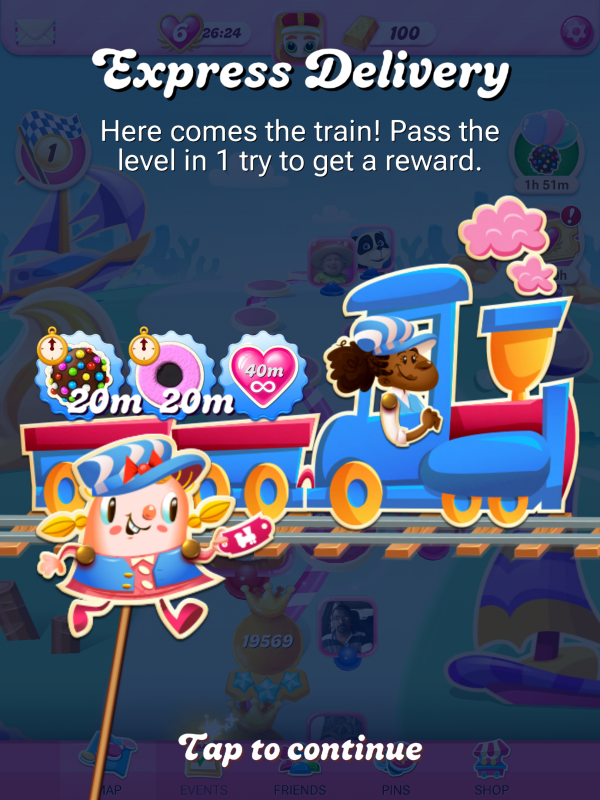 this is the fourth time I’ve used gold bars to keep playing and to win the train 20 minute bonuses and I pass the level but never get the reward. What is happening. I want my gold bars back!!!!! 😡😡