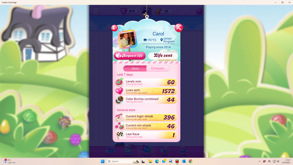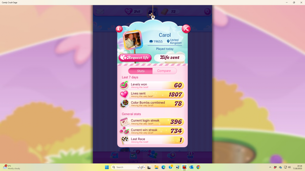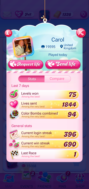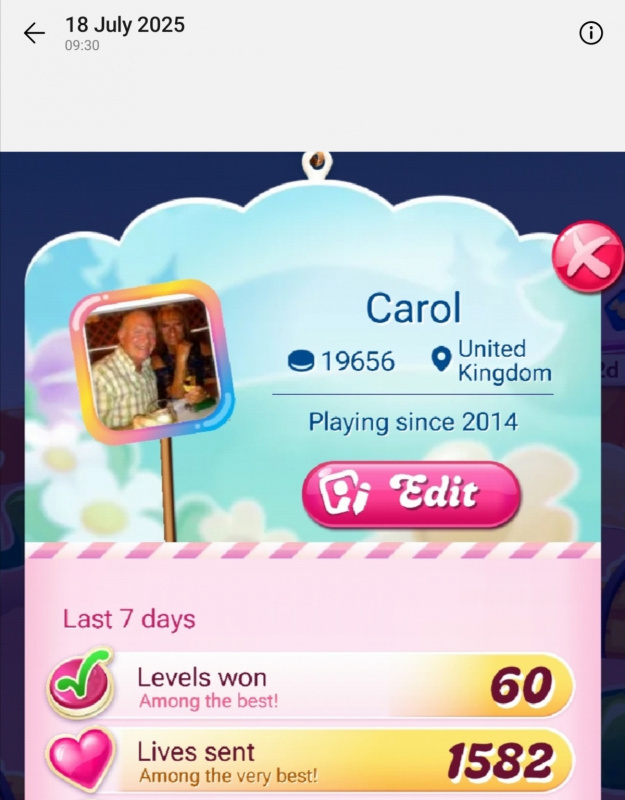 Hi @Alienscar I know I said I was never going to look at my Player Card again, but I just couldn't help it. Now I know we'd kind of given up with the sending of lives, but I sent them a bit later this morning and had a little peek before sending. And this is what it showed