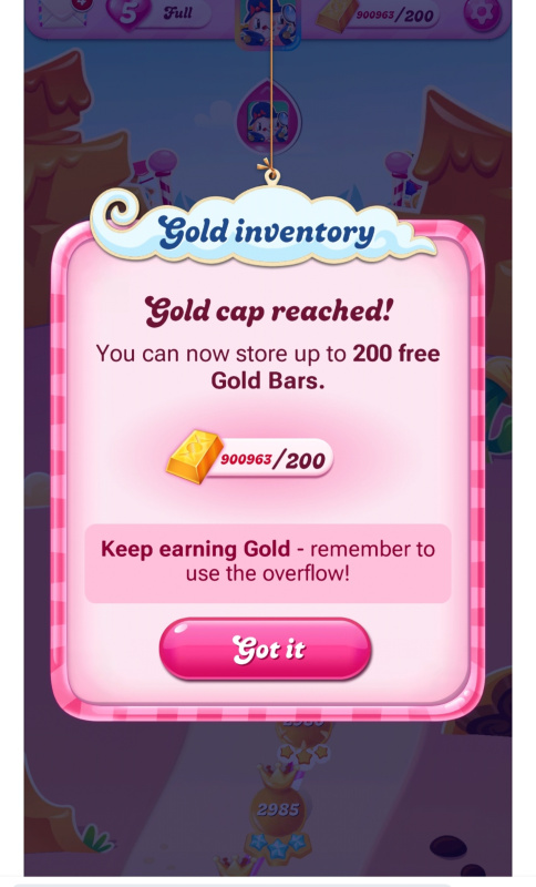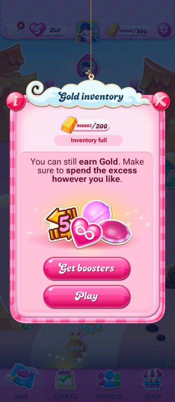What does "Gold Inventory" mean? This is complete nonsense. I can't store more than 200 gold coins. Candy Crush Saga is getting ridiculous. This nonsense needs to be removed immediately.