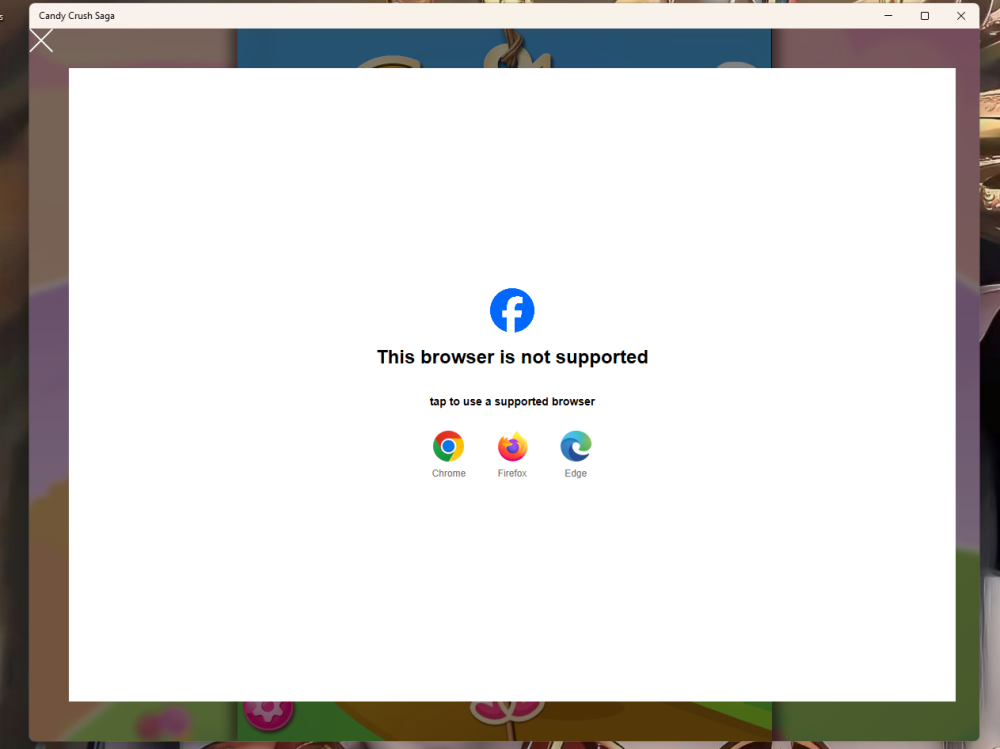 i install candy crash in maicrosoft store than i login my facebook game id but it's not work