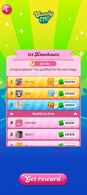 Collect green candies by playing levels, climb your leaderboard, and advance through each stage. New levels and Star Tournament (End of Content) levels will give you 30x more points than old levels, so plan your moves wisely.