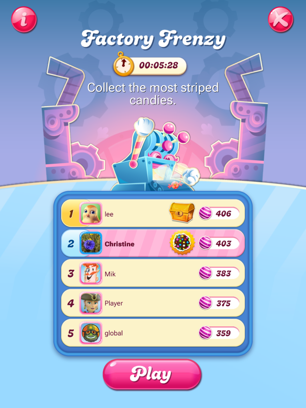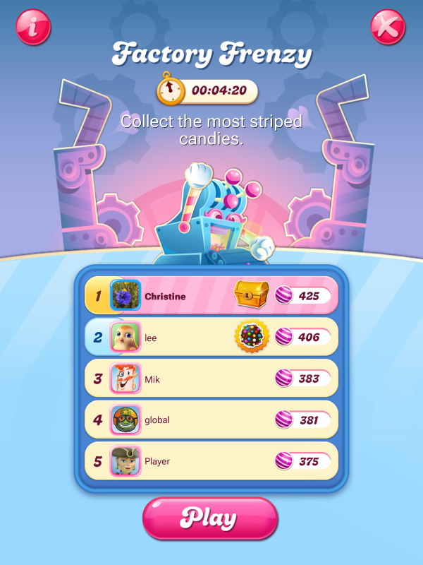 I mean it! I've just discovered a fun new way to play Candy Crush. Not wanting to enter the Candy Cup round too early I've noticed that it's possible to earn striped candies for the Factory Frenzy event by playing and failing a new unplayed level. And this works! It really works. Moreover, it's actually fun.
