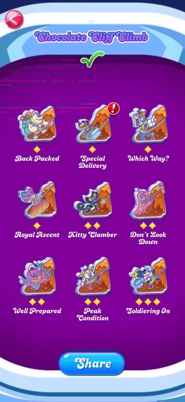 Want to show off? You can share your progress using your device’s native share button. (Note: This isn’t available on HTML5 browser version just yet.)
