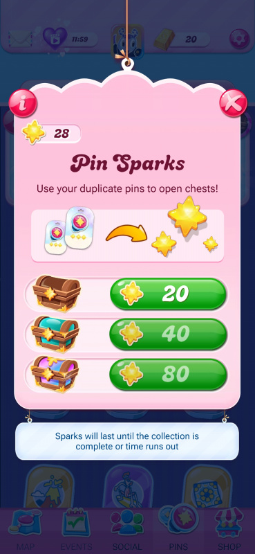No problem! Duplicate Pins turn into Pin Sparks, which you can trade in for Spark Chests.