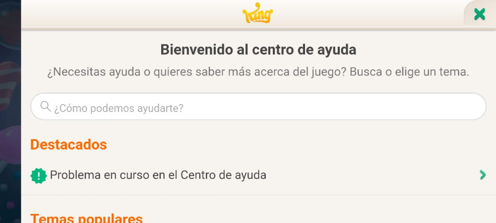- Open your Candy Crush or any other King game and head to the Help Center.