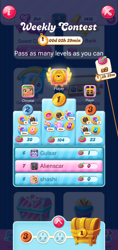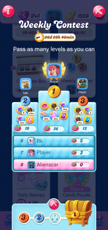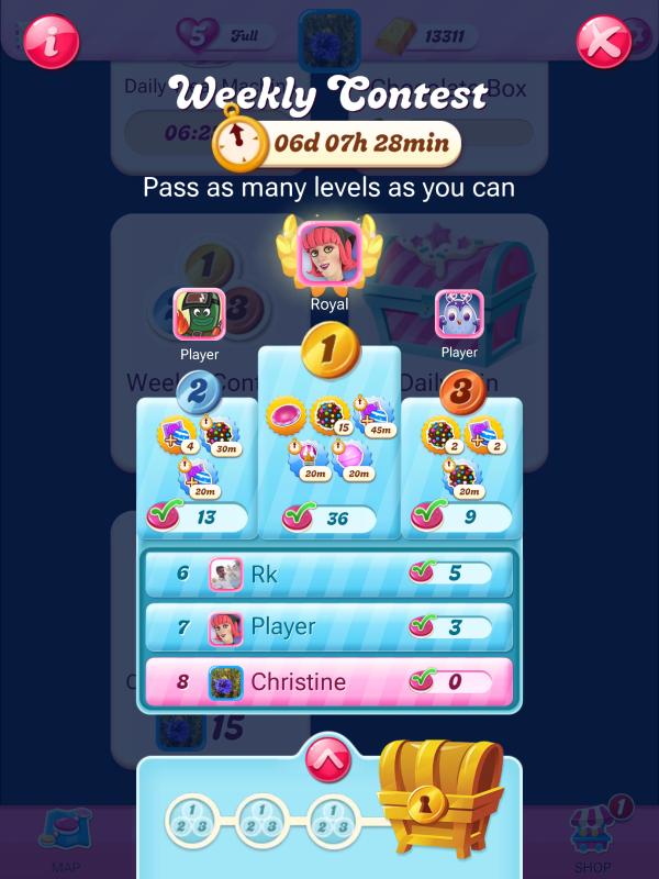 So, it used to be that you competed with players who were around the same level as you, so they were facing the same challenges you were. Now, the weekly contest includes all players and each week, I find myself falling way short - I might complete 45 levels whereas new players are completing 100's of levels.