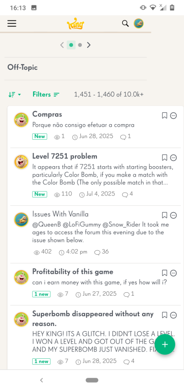 Without using the filters you can see the overlap below. Off-Topic is hidden in the 'please bring the old game music' thread.