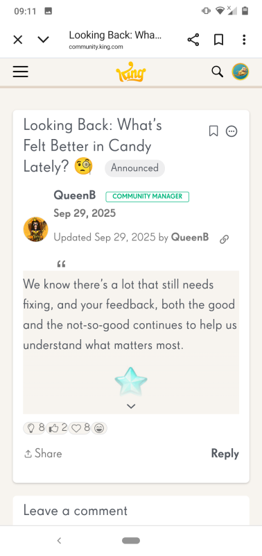 We know there’s a lot that still needs fixing, and your feedback, both the good and the not-so-good continues to help us understand what matters most. But today I wanted to flip the question for a moment: 👉 Is there anything that you feel has improved in Candy lately? Maybe a small change you noticed, something that…
