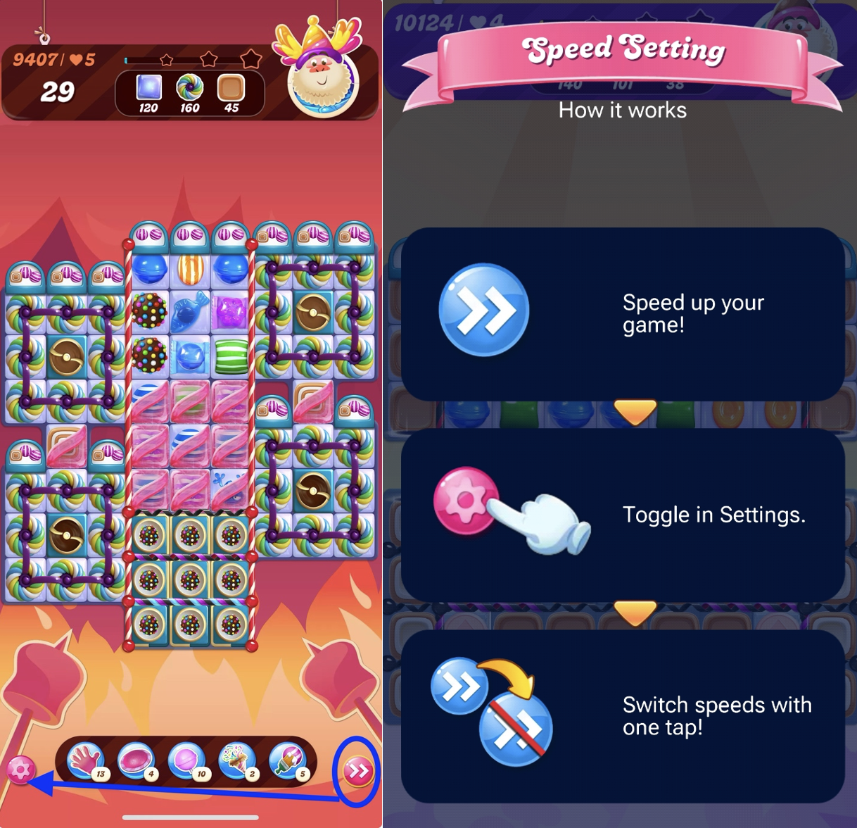 Whether you enjoy crushing candies at lightning speed or enjoy a slower pace, you can easily switch it up whenever you want.