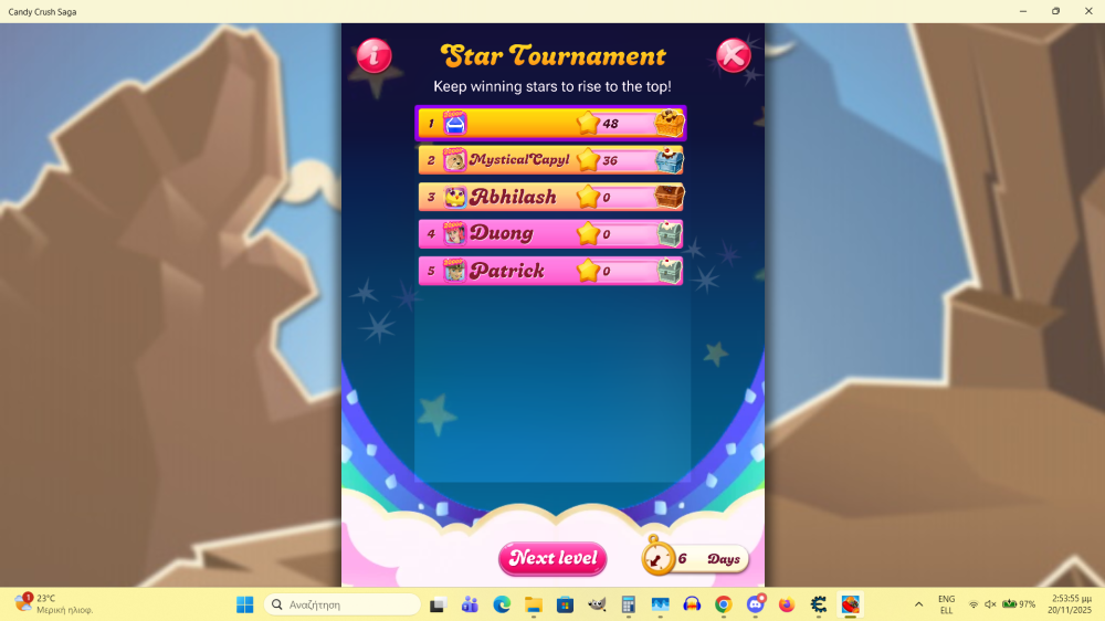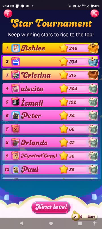 Just a quick update on the Star Tournament the previous round ended yesterday, and a new one has now started. If you’re not seeing your stars count yet, don’t worry, you’ll first need to complete the newly released levels (episodes) before the new tournament unlocks and starts tracking progress again.