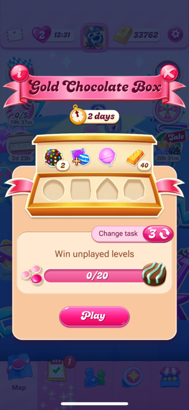 If possible, can Star Tournament count as new level wins for the Chocolate Box only as this will create minor issues for users who never have left a box expire before. Unfortunately, by next week the current box will have expired and may be difficult to go back to gold level especially if one chocolate in the silver box only offers something doable with new level wins in its all four options. This is fortunately the only thing I don't like (Being stuck in the Chocolate Box).