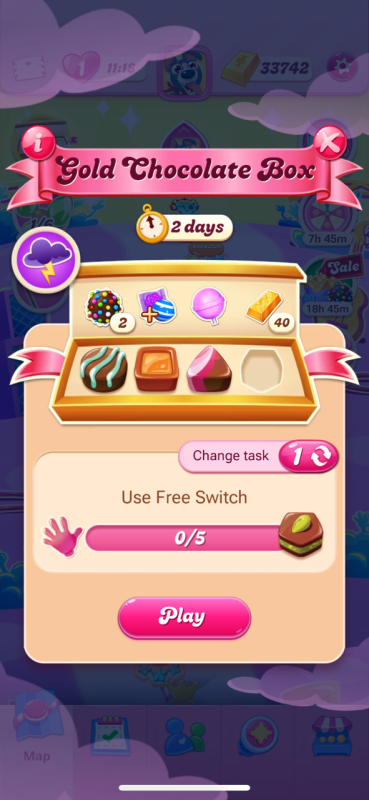 Started an offline account again and I was shocked to see that the Chocolate Box was the old style in where the Silver and Gold levels had color collection tasks that didn't require new levels and the fourth task having only four possible options instead of more than four with four of them being presented (Unplayed, 1st Try Wins/Gold Crown, Party, UFO). Has someone else got offered the old Chocolate Box style once again (From users who had it at least during the beginning of this month)? Mine is unknown as I'm now waiting for the box to expire.