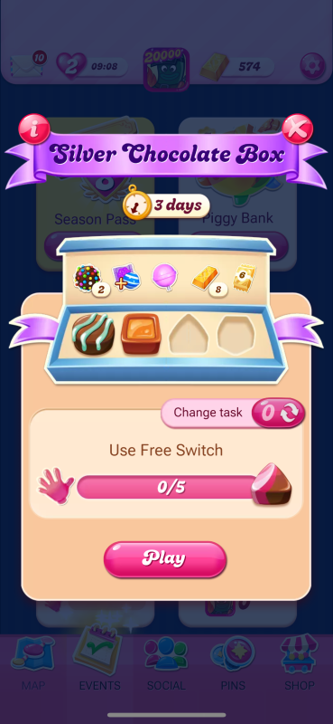 If possible, can Star Tournament count as new level wins for the Chocolate Box only as this will create minor issues for users who never have left a box expire before. Unfortunately, by next week the current box will have expired and may be difficult to go back to gold level especially if one chocolate in the silver box only offers something doable with new level wins in its all four options. This is fortunately the only thing I don't like (Being stuck in the Chocolate Box).