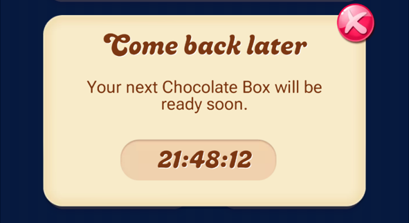 My chocolate box changed once again. Now when I fill the chocolate box, I get a 3 hour timer untill next one.