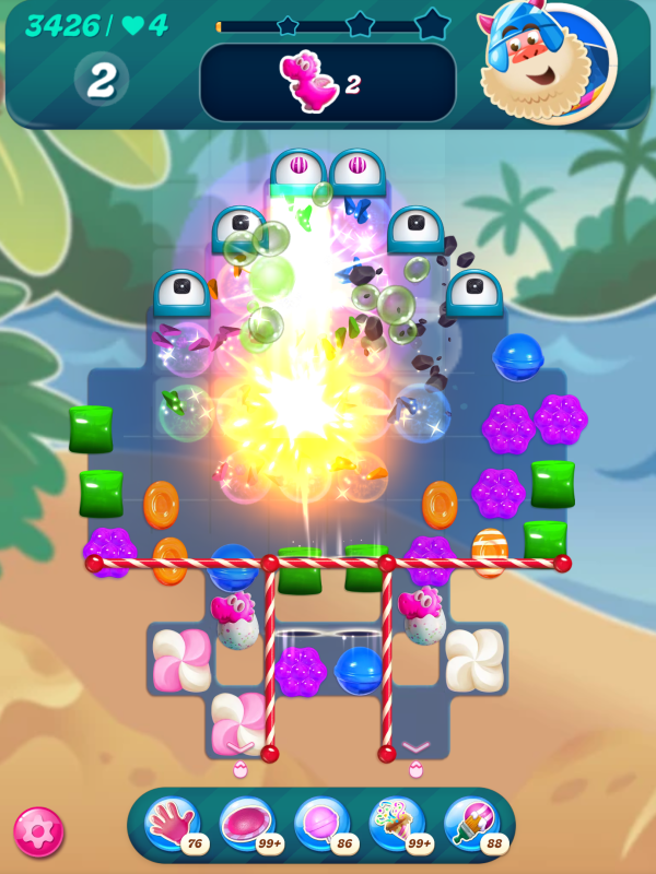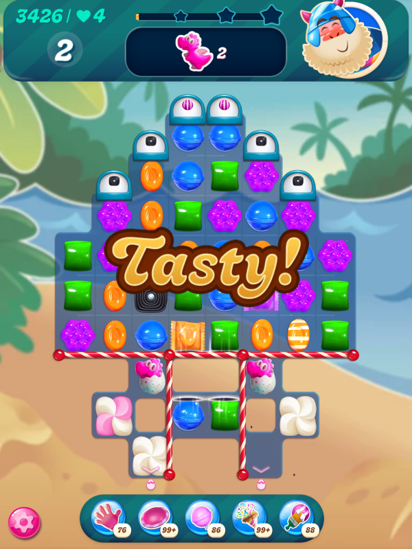 A fish + wrap combo was really useful. It could be relied on to go for a square that would remove the most blockers.