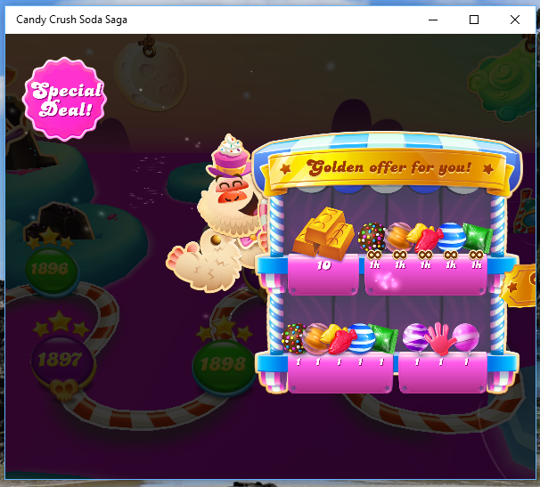 I cannot advance to level 1112 in CC Soda Saga. A screen pops up offering me a last chance to buy the "Special Deal"ย , "Golden offer for you".ย I cannot get it away or close it. In Africa we do not have money to buy stuff like that, can I not play CC Soda Saga anymore?